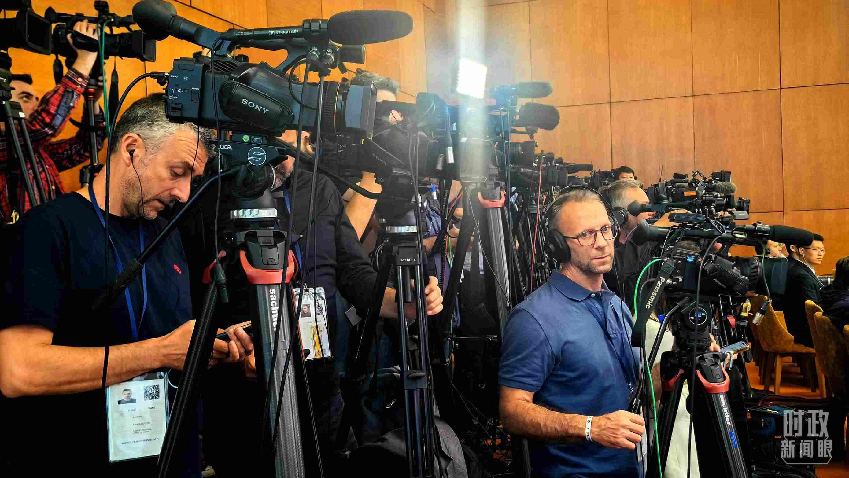 △習(xí)主席同武契奇總統(tǒng)會(huì)談后共同會(huì)見記者,這是會(huì)見開始前的現(xiàn)場(chǎng)。(總臺(tái)央視記者鄂介甫拍攝)