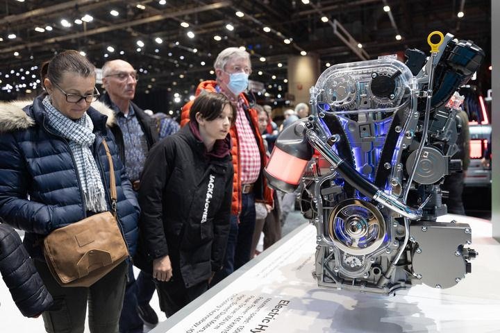 △觀眾在瑞士舉行的2024年日內(nèi)瓦國際車展上參觀比亞迪新款發(fā)動機。