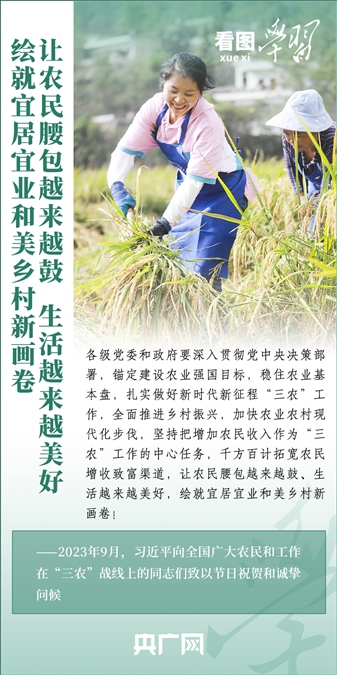 民族要復(fù)興,鄉(xiāng)村必振興。黨的十八大以來,每到各地考察調(diào)研,習(xí)近平總書記總會去農(nóng)村看一看,走進(jìn)田間地頭,和農(nóng)民拉拉家常??倳洀娬{(diào),“建設(shè)宜居宜業(yè)和美鄉(xiāng)村是農(nóng)業(yè)強國的應(yīng)有之義”,“要讓農(nóng)民腰包越來越鼓、生活越來越美好”。