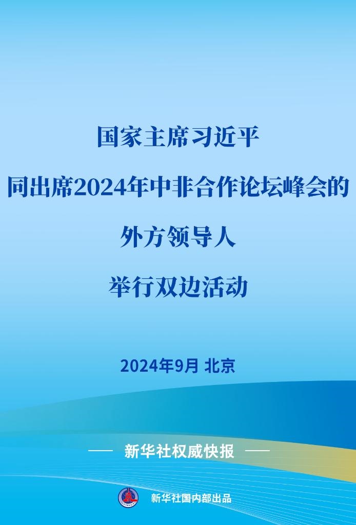 國家主席習(xí)近平將于9月5日出席峰會開幕式并發(fā)表主旨講話。峰會期間,習(xí)近平主席還將為應(yīng)邀與會的中非合作論壇非方成員領(lǐng)導(dǎo)人、有關(guān)非洲地區(qū)組織和國際組織代表等舉行歡迎宴會和相關(guān)雙邊活動。