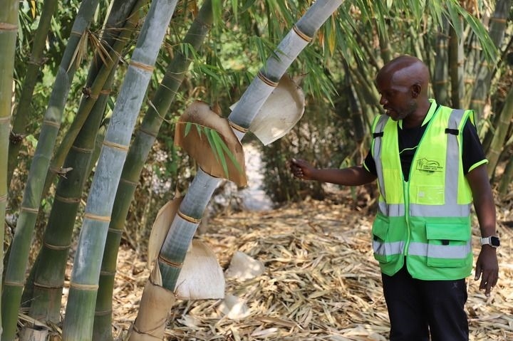 2024年8月5日,在烏干達(dá)西部姆巴拉拉市的竹子種植園,阿比·史蒂夫·圖西梅在料理竹子。新華社發(fā)(羅納德·塞坎迪攝)