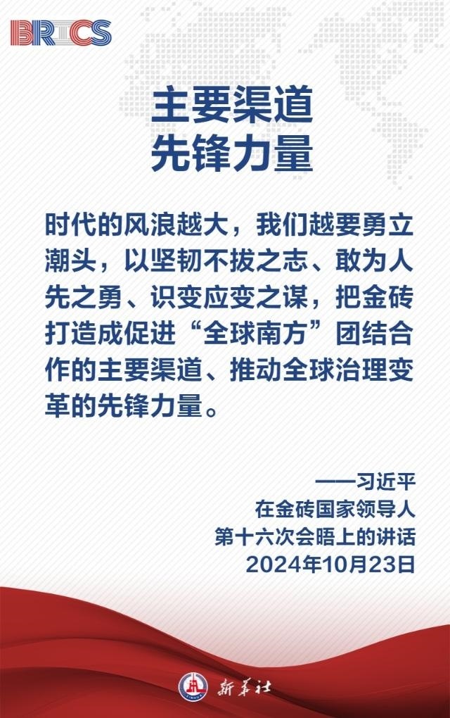 當?shù)貢r間10月23日,國家主席習近平在俄羅斯喀山出席金磚國家領導人第十六次會晤并發(fā)表題為《登高望遠,穿云破霧 推動“大金磚合作”高質(zhì)量發(fā)展》的重要講話,為推動“大金磚合作”行穩(wěn)致遠指明五個方向——