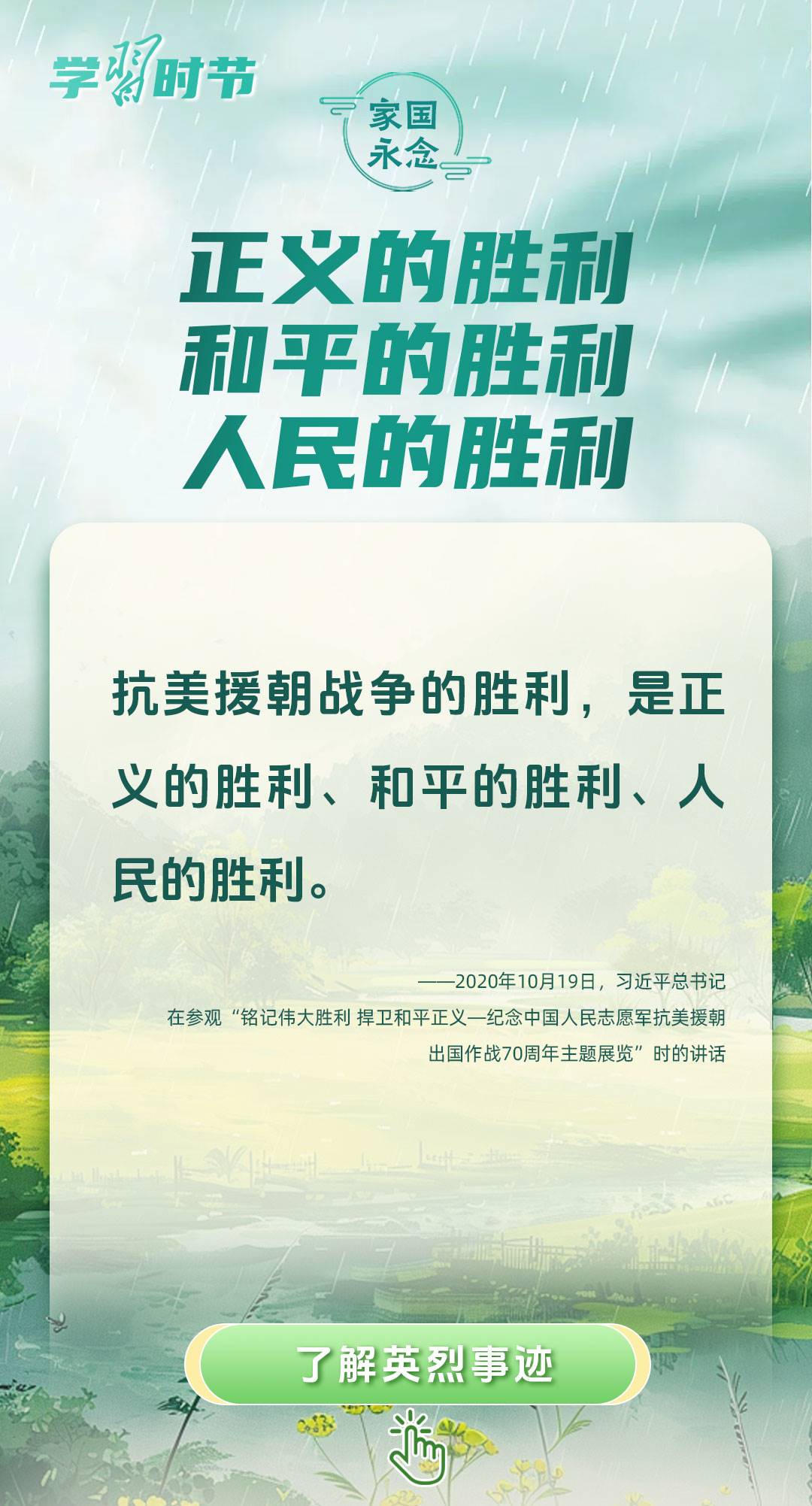 今年是中國人民抗日戰(zhàn)爭暨世界反法西斯戰(zhàn)爭勝利80周年、中國人民志愿軍抗美援朝出國作戰(zhàn)75周年。習(xí)近平總書記曾說:“對一切為國家、為民族、為和平付出寶貴生命的人們,不管時(shí)代怎樣變化,我們都要永遠(yuǎn)銘記他們的犧牲和奉獻(xiàn)。”今天我們所擁有的一切,無不凝結(jié)著英雄、英烈們的奉獻(xiàn)付出乃至巨大犧牲。