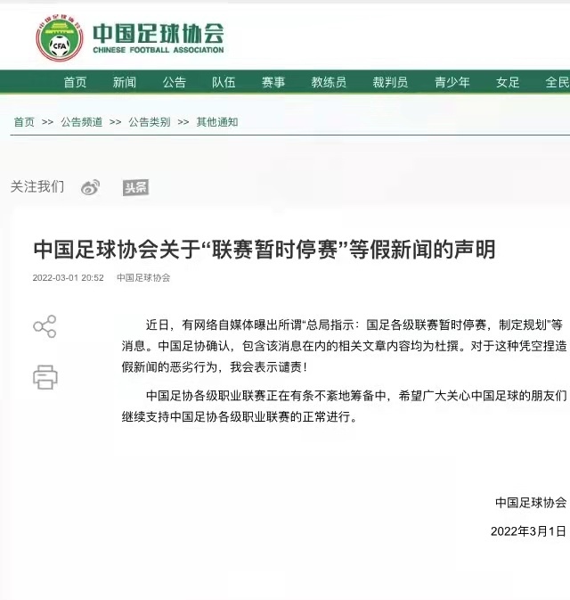 “近日,有網(wǎng)絡(luò)自媒體曝出所謂‘(體育)總局指示:國(guó)足各級(jí)聯(lián)賽暫時(shí)停賽,制定規(guī)劃’等消息。中國(guó)足協(xié)確認(rèn),包含該消息在內(nèi)的相關(guān)文章內(nèi)容均為杜撰。對(duì)于這種憑空捏造假新聞的惡劣行為,我會(huì)表示譴責(zé)!”中國(guó)足協(xié)在聲明中說(shuō)。