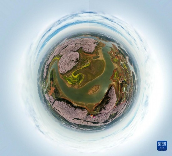 這是3月21日拍攝的貴州省貴安新區(qū)櫻花園(無人機全景照片)。