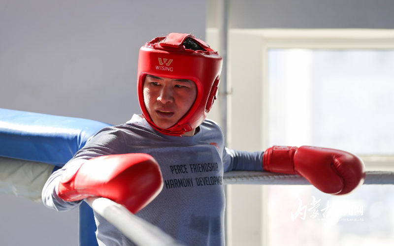當日,記者在拳擊館內看到,在訓練中李倩腳步輕盈,汗珠在額頭滑落。她戴上拳套,走向沙袋,一記記重拳砸出,發(fā)出沉悶的“砰”聲。內蒙古女子拳擊隊的數(shù)十名拳手正在同時訓練,沙袋晃動,呼吸急促,空氣中彌漫著汗水與堅持的味道?!胺朗?,腳下要穩(wěn)!”內蒙古拳擊隊總教練哈達巴特爾的聲音在空間回蕩。李倩的訓練格外嚴格。除了常規(guī)力量訓練、反應訓練和體能循環(huán),她還要進行一對一的與男拳手的實戰(zhàn)模擬,幾次交鋒下來,氣息都愈發(fā)急促。但李倩沒有退縮,反而越打越穩(wěn),腳步靈活,出拳干凈利落。