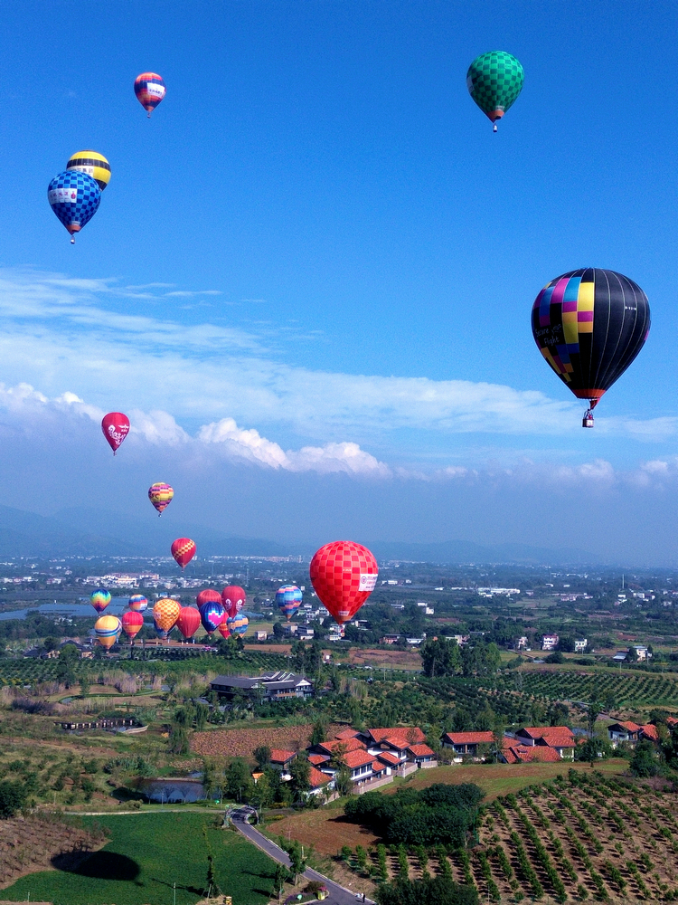 隨著開幕儀式的推進(jìn),30支熱氣球依次完成點火、充氣,在歡呼聲中緩緩升空。紅黃藍(lán)綠的熱氣球與郁郁蔥蔥的柑橘園、錯落有致的川西民居相映成趣,構(gòu)成一幅絕美畫卷。據(jù)了解,此次全國熱氣球精英賽(四川金堂站)作為活動核心賽事,將在10月15日-19日期間開展游蕩華爾茲、定點投靶、肘形飛行等10余項專業(yè)競技項目,最讓人期待的是本次賽事將熱氣球飛躍龍泉山作為了長距離飛行的競賽科目,這將是熱氣球首次飛越龍泉山。屆時,參賽選手在比賽的同時還可以在空中觀賞龍泉山脈、千里沱江、絕美古剎等景觀。