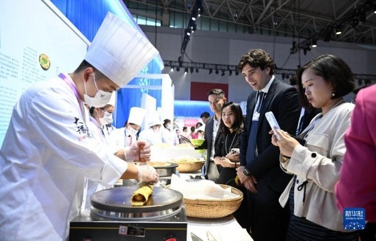 6月27日,與會嘉賓在第十四屆夏季達(dá)沃斯論壇文化之夜現(xiàn)場了解天津特色美食。