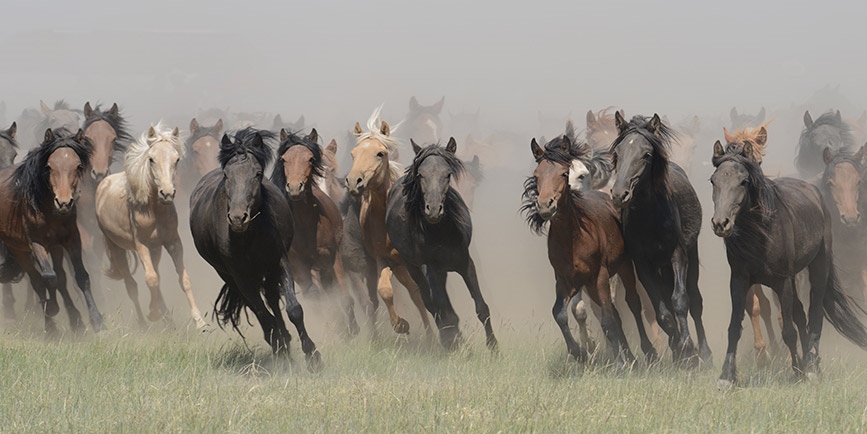 哈日巴拉油畫《逐夢(mèng)前行蒙古馬》
