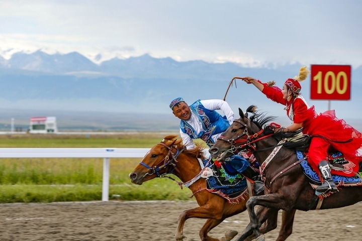 本屆運動會的表演項目具有鮮明的地域差異性和民族特色。巍峨雪山、廣袤草原,運動會馬上項目的比賽于今年7月在新疆維吾爾自治區(qū)昭蘇縣舉行。其中,“姑娘追”作為表演項目給人留下深刻印象?!肮媚镒贰痹仁枪_克族男女青年的一種戀愛方式,即姑娘騎馬追上心愛的青年,用皮鞭輕輕抽打他,來表達愛意?,F(xiàn)如今,在各民族文化的互鑒融通中,“姑娘追”已成為一項饒有風趣的群眾性體育活動,不斷傳承發(fā)展。