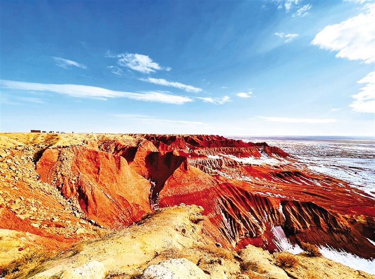 四子王旗大紅山,赤色丹霞地貌與雪原戈壁相映,繪就塞北獨有的蒼茫壯闊。王錦業(yè)  攝