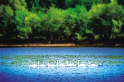 內蒙古大興安嶺保存完整的生態(tài)系統(tǒng),為保護生物多樣性提供了基礎。圖為一群大天鵝遷徙途中落腳大興安嶺天然湖泊。