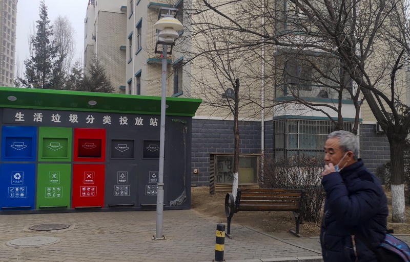 1月20日,呼和浩特市一名居民在政府投放進小區(qū)的生活垃圾分類投放站前走過。呼和浩特市是自治區(qū)唯一入選的全國首批實施生活垃圾強制分類的46個重點城市之一。根據(jù)要求,2019年底,全市公共機構和中小學幼兒園全部推行垃圾分類,到2020年底,垃圾回收利用率將達到35%以上。分布在全市各小區(qū)的可回收垃圾智能分類箱依托移動互聯(lián)網(wǎng)、大數(shù)據(jù)、物聯(lián)網(wǎng)等方式,通過信息化手段,從垃圾分類宣傳、投遞、收集、處理等方面著手,對垃圾分類各個環(huán)節(jié)進行智能化管理,以積分激勵的形式逐步培養(yǎng)轄區(qū)居民垃圾分類的好習慣。