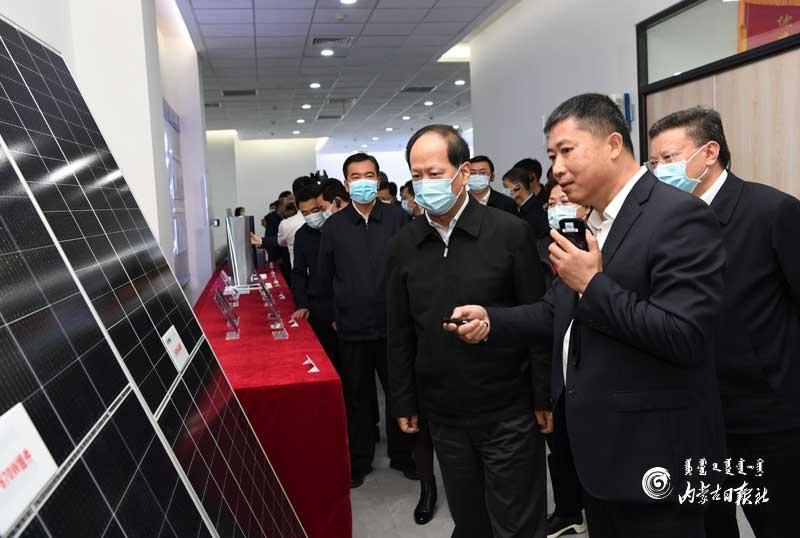 4月21日,自治區(qū)黨委書記、人大常委會(huì)主任石泰峰,與參加自治區(qū)推動(dòng)高質(zhì)量發(fā)展重大項(xiàng)目建設(shè)動(dòng)員大會(huì)的代表一起觀摩弘元新材料(包頭)有限公司單晶、切片項(xiàng)目產(chǎn)品。內(nèi)蒙古日?qǐng)?bào)社融媒體記者 袁永紅 攝