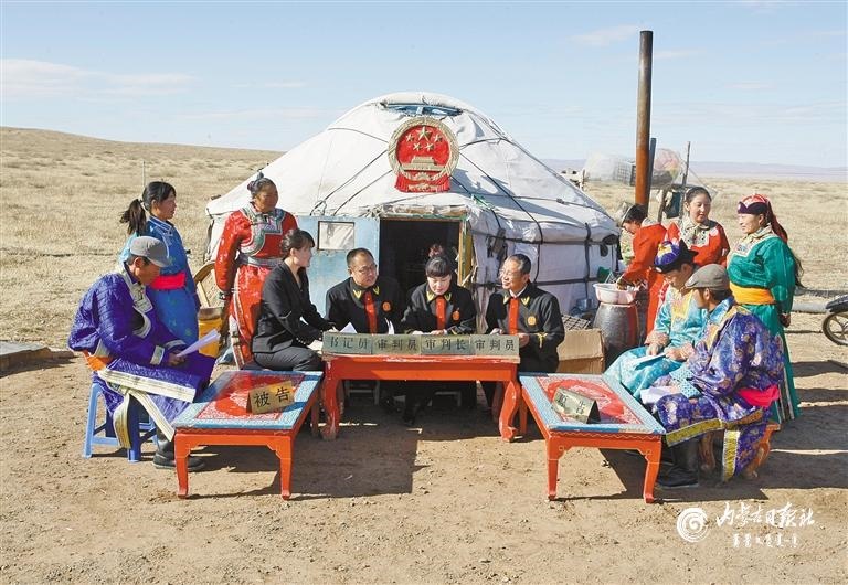 錫林浩特市人民法院組建的“牧區(qū)巡回法庭”開到了牧民家門口,被當?shù)厝罕娪H切地稱為“馬背法庭”。內蒙古日報社融媒體記者 馬建荃 攝