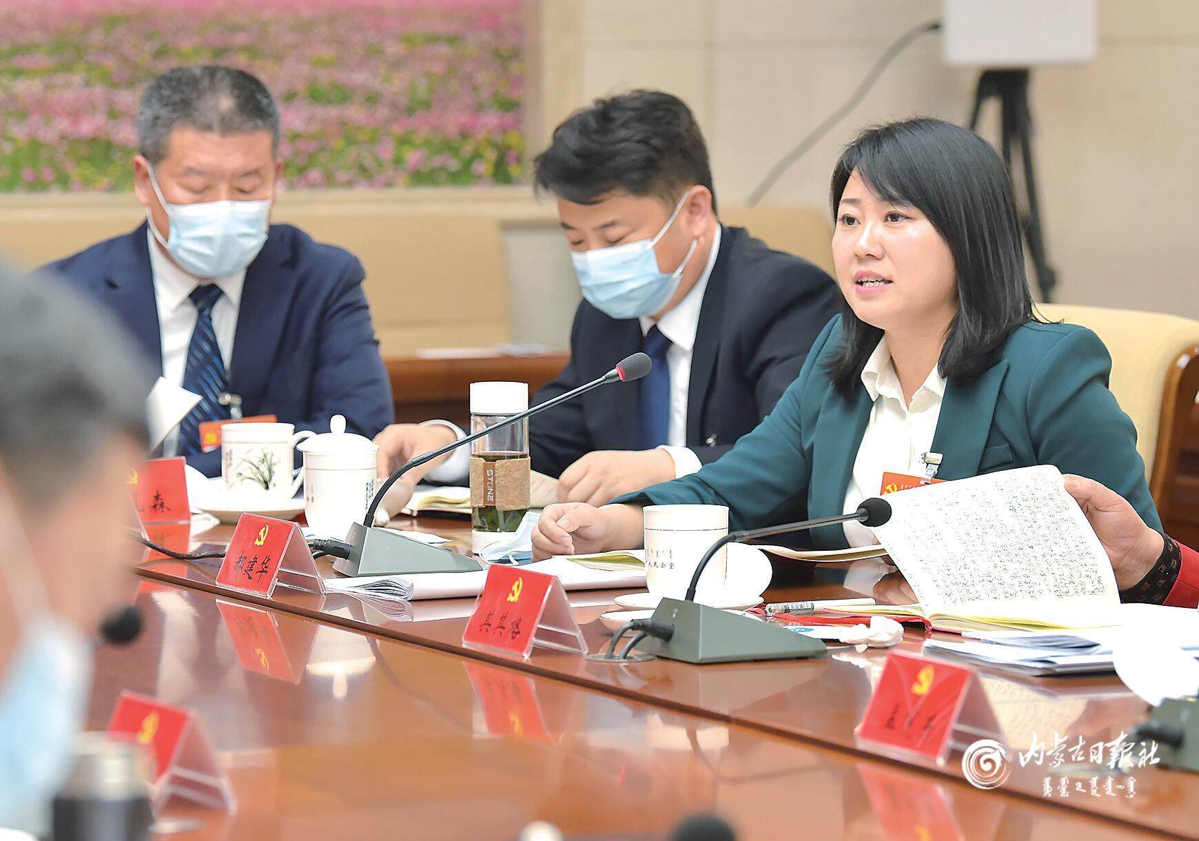 邊東代表建議加強(qiáng)企業(yè)科技領(lǐng)軍人才的引進(jìn)。內(nèi)蒙古日報(bào)記者馬建荃攝