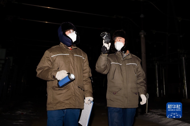 國(guó)家電網(wǎng)滿洲里220千伏變電站位于滿洲里市西郊,負(fù)責(zé)給全市三分之一的用戶供電。夜越來(lái)越深,“95后”值班員王東亞和同事拿著測(cè)溫設(shè)備,開(kāi)始對(duì)戶外輸變電設(shè)備進(jìn)行檢查。他們深一腳淺一腳地踩著雪,仔細(xì)檢查高壓開(kāi)關(guān)外的伴熱帶是否正常工作。“我們怕冷,設(shè)備更怕冷,天越冷越要加強(qiáng)巡視?!蓖鯑|亞說(shuō)。
