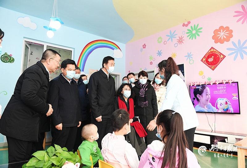 1月22日下午,國務委員王勇在民政部黨組書記、部長李紀恒,中國殘聯(lián)主席張海迪,自治區(qū)黨委副書記、自治區(qū)主席王莉霞的陪同下,來到烏蘭察布市兒童福利院,看望孤殘兒童并為孩子們帶來了新春祝福和新年禮物。內(nèi)蒙古日報社融媒體記者韓卿立攝