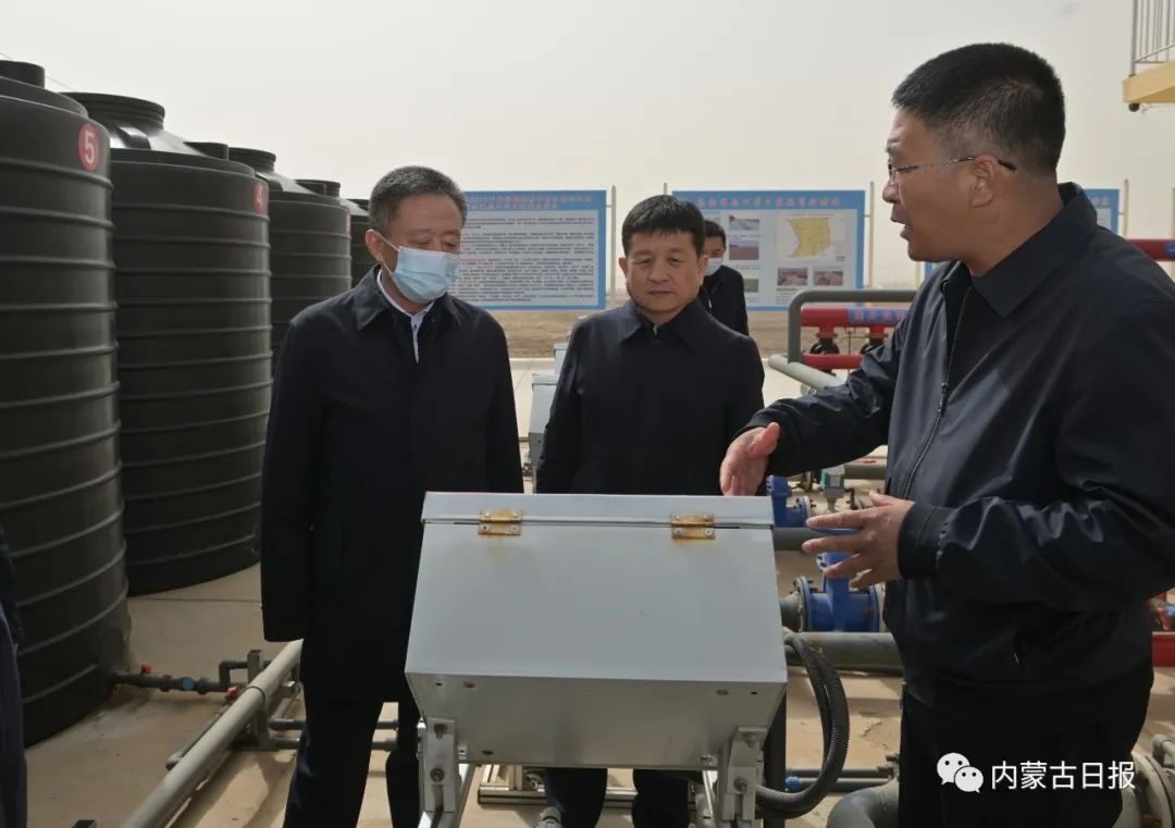 3月22日上午,自治區(qū)黨委書記孫紹騁在巴彥淖爾市調(diào)研烏拉特前旗新安鎮(zhèn)樹林子村高標準農(nóng)田科技示范區(qū)黃河水澄清滴灌項目。內(nèi)蒙古日報社融媒體記者 馬建荃 攝