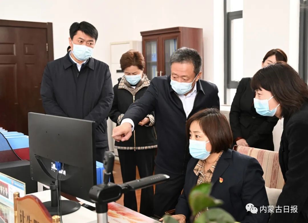 4月21日,孫紹騁在鄂爾多斯市東勝區(qū)天驕街道鐵西社區(qū)了解基層需要維護(hù)的系統(tǒng)平臺(tái)情況。內(nèi)蒙古日?qǐng)?bào)社融媒體記者馬建荃攝