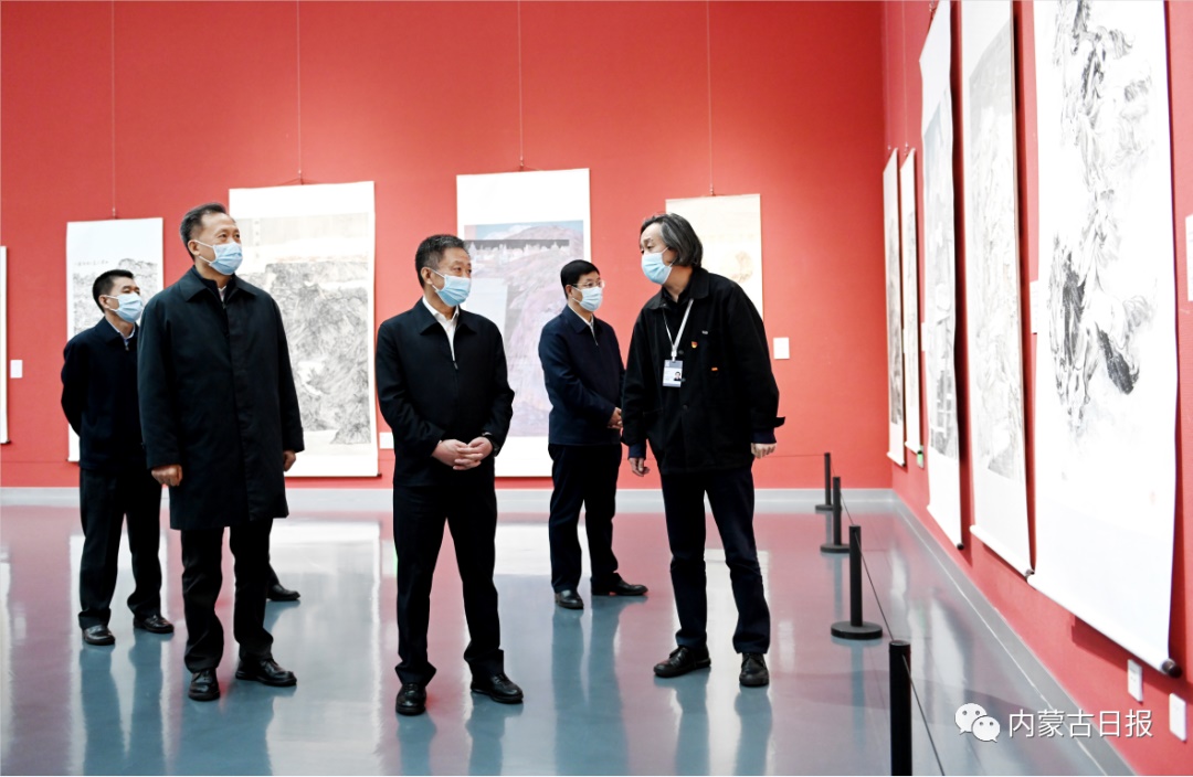 5月7日,孫紹騁來到內(nèi)蒙古美術(shù)館,參觀“扎實開展主題教育建功自治區(qū)兩件大事——2023年內(nèi)蒙古自治區(qū)政協(xié)書畫作品展”。