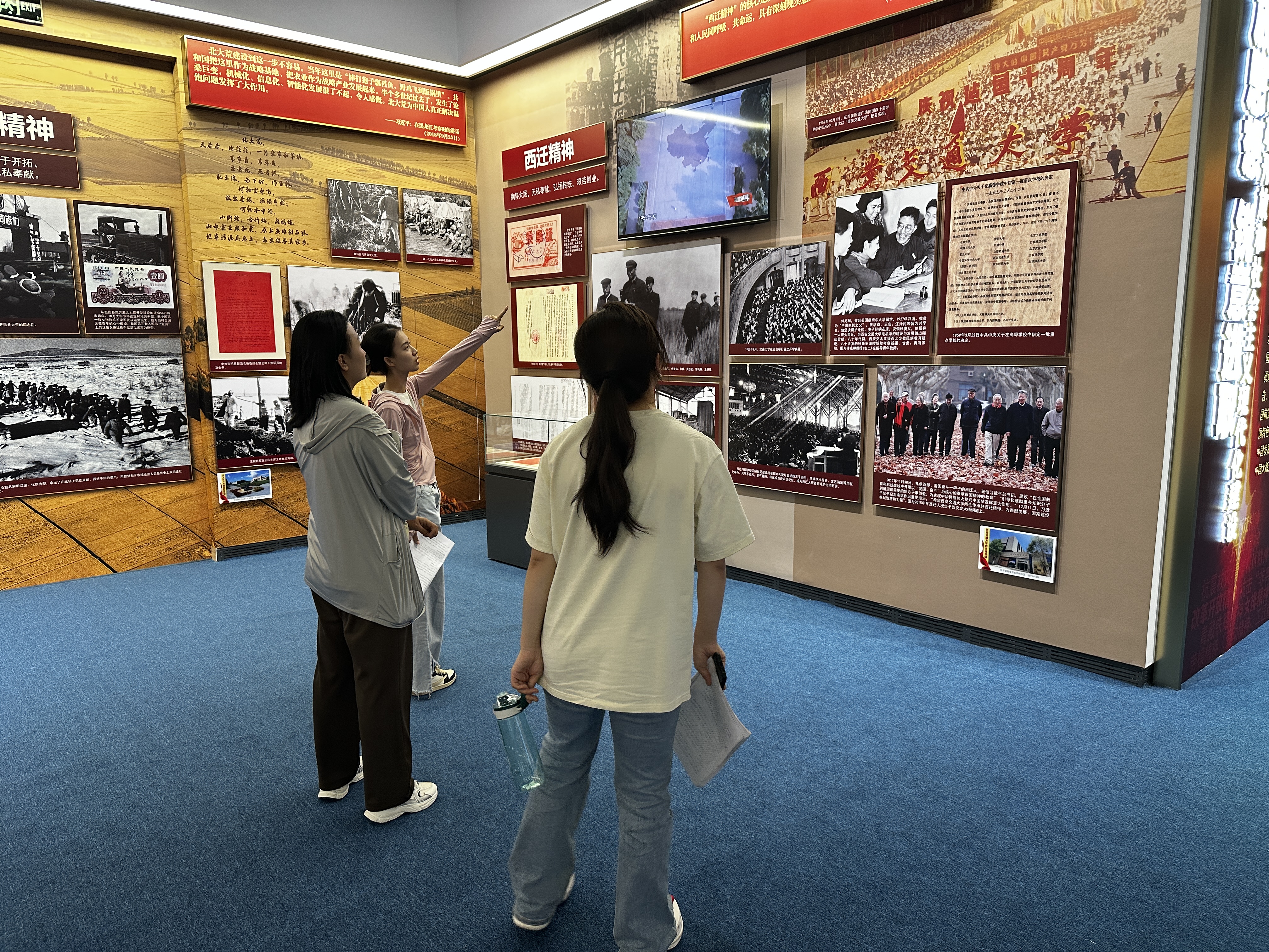 記者看到,在牛玉儒精神、“三北”精神等展覽前,圍繞著不少觀眾,他們駐足凝視,拿出手機(jī)拍攝,互相交流著?!拔覍?duì)這個(gè)展覽很感興趣,可以全面學(xué)習(xí)到黨的歷史?!闭f完,金橋小學(xué)學(xué)生趙峻溥在抗美援朝精神展覽前認(rèn)真地閱讀起來。