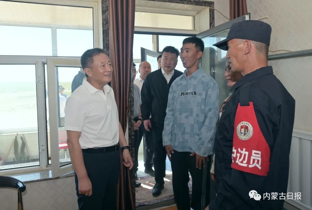 8月13日,自治區(qū)黨委書(shū)記孫紹騁在蘇尼特右旗走訪護(hù)邊員賽因巴特爾。內(nèi)蒙古日?qǐng)?bào)社融媒體記者 馬建荃 攝