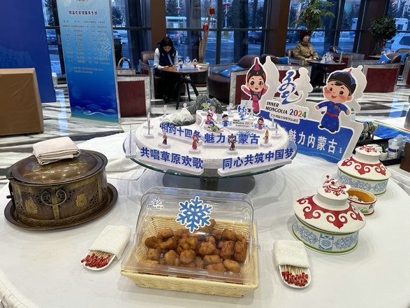 劉欣說:“‘十四冬’期間,酒店接待服務(wù)站將實(shí)行24小時值班制度,為入住酒店的賓客提供醫(yī)療衛(wèi)生、交通保障等服務(wù)。同時,我們還在一樓大堂設(shè)置了‘十四冬’文創(chuàng)商場,商場內(nèi)展示有‘十四冬’文創(chuàng)產(chǎn)品及皮畫、太陽花等呼倫貝爾的非遺產(chǎn)品?!?/p>