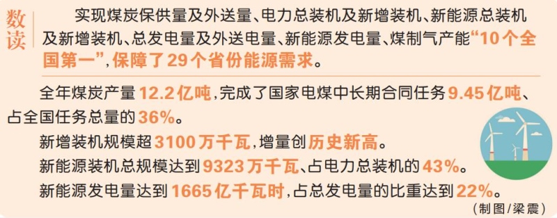 2023年,內(nèi)蒙古能源工作交上了一份亮眼的成績單:實現(xiàn)煤炭保供量及外送量、電力總裝機及新增裝機、新能源總裝機及新增裝機、總發(fā)電量及外送電量、新能源發(fā)電量、煤制氣產(chǎn)能“10個全國第一”,保障了29個省份能源需求。內(nèi)蒙古保障國家能源安全能力顯著增強。