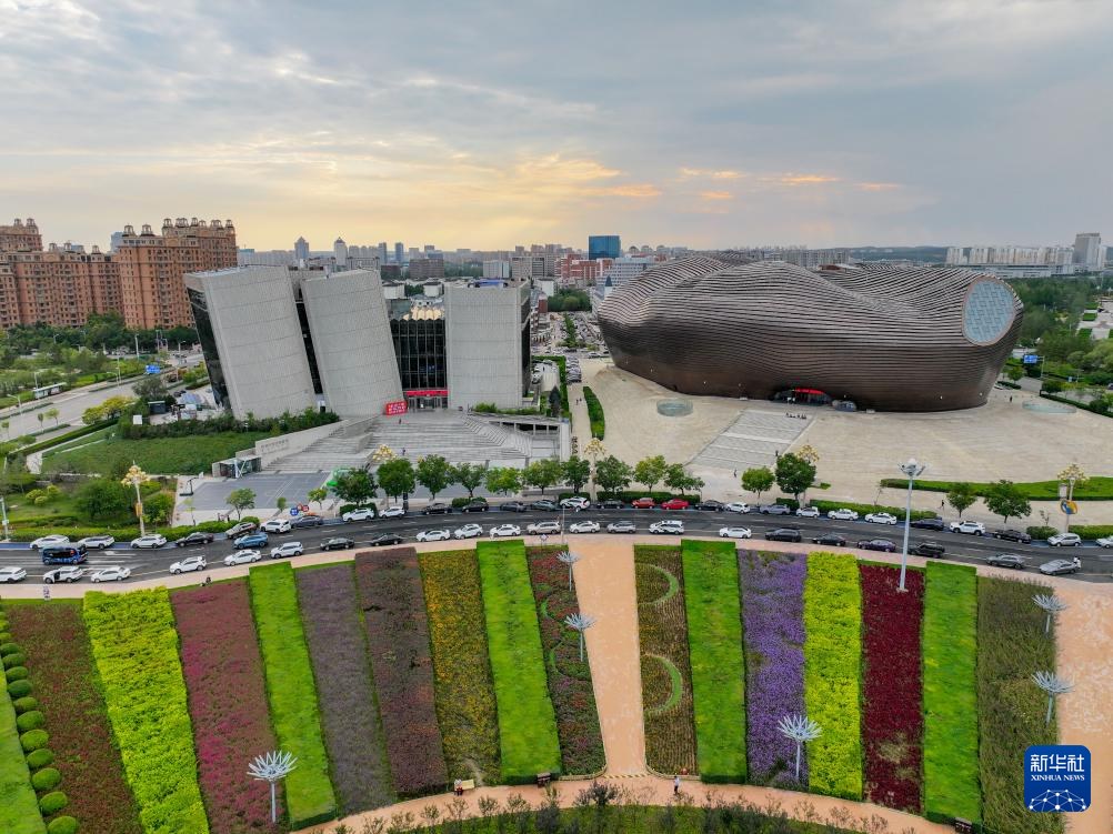 ??這是9月19日拍攝的鄂爾多斯市圖書館與博物院(無人機(jī)照片)。