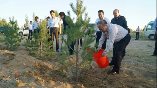 在河西走廊—塔克拉瑪干沙漠邊緣阻擊戰(zhàn)區(qū),阿拉善盟在啟動三大沙漠林草鎖邊帶“合龍”戰(zhàn)的基礎(chǔ)上,廣泛發(fā)動各族各界群眾,開啟了為期兩個月的“萬人植綠大會戰(zhàn)”,計劃完成3000畝造林綠化任務(wù)。3月12日植樹節(jié)當(dāng)天,500余名干部群眾在阿拉善左旗巴彥浩特鎮(zhèn)扎海烏素嘎查全民義務(wù)植樹基地種下1.5萬株花棒,為騰格里沙漠再添新綠。3月19日,1500余名干部職工來到阿拉善左旗通古勒格淖爾嘎查全民義務(wù)植樹基地,補(bǔ)植補(bǔ)造2萬多株樹苗,筑起防風(fēng)固沙、守護(hù)生態(tài)的綠色屏障……