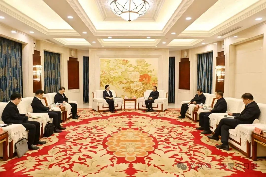 自治區(qū)領(lǐng)導(dǎo)丁繡峰、于立新、奇巴圖參加會(huì)見。(記者 李晗)