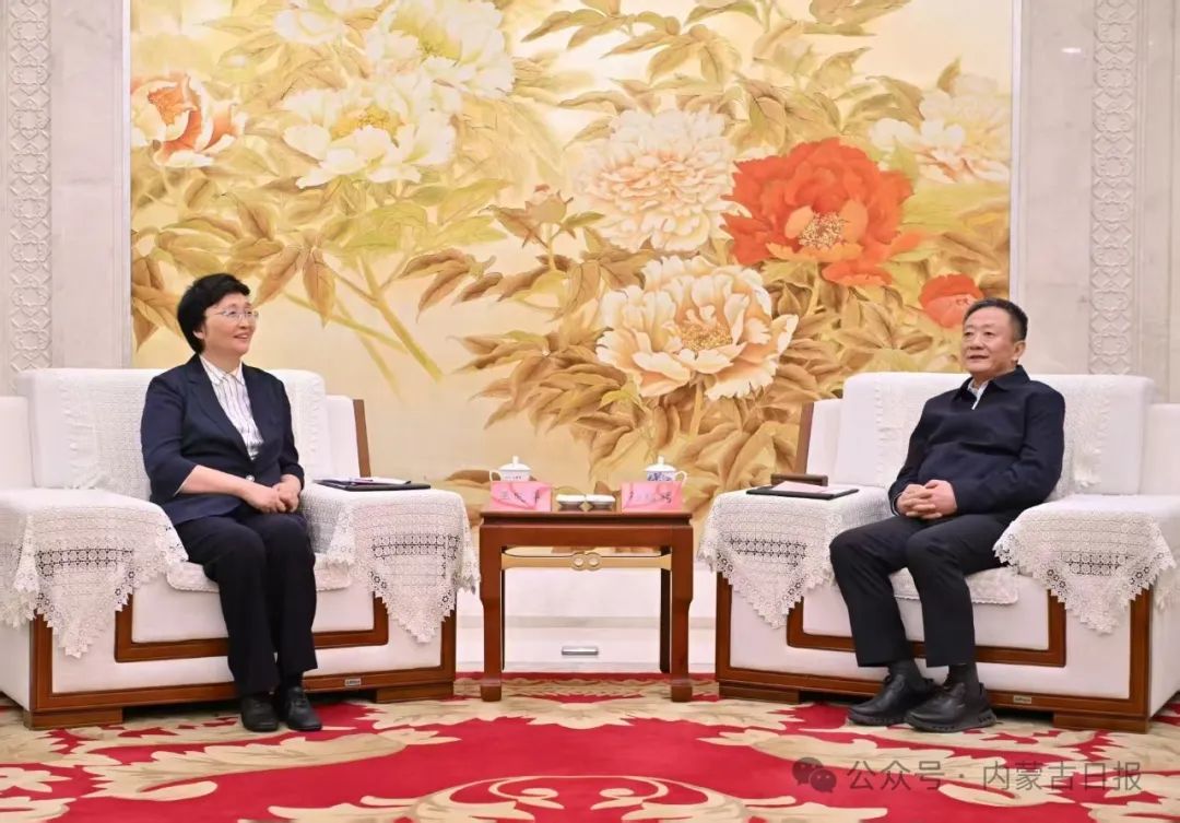 5月12日,自治區(qū)黨委書記孫紹騁在包頭會(huì)見人力資源和社會(huì)保障部黨組書記、部長王曉萍。草原云·內(nèi)蒙古新聞網(wǎng)記者 馬建兵 攝