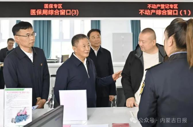 6月16日,自治區(qū)黨委書記孫紹騁來到阿爾山市政務服務和大數(shù)據(jù)中心,同辦事群眾和工作人員進行交流,實地了解基層職能職責、減負效果等情況。草原云·內蒙古新聞網記者