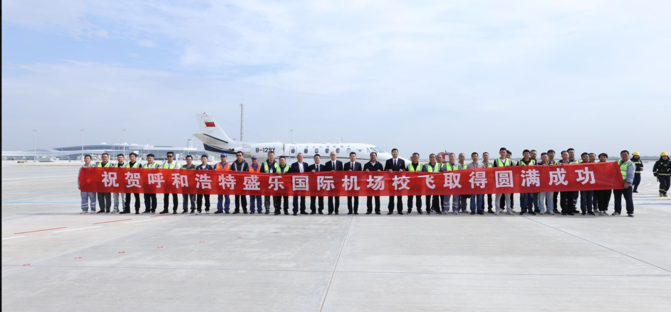 校驗飛行,是新建機場投運的關(guān)鍵環(huán)節(jié),是機場開放和航路運行的最基本的前提之一。9月5日,中國民用航空飛行校驗中心派出專業(yè)機組進駐開展校飛工作。9月12日,C560校驗飛機平穩(wěn)降落在跑道上,留下首道輪胎膠痕,完成了“第一飛”。專業(yè)團隊以專業(yè)的技術(shù)和嚴謹?shù)膽B(tài)度,通過專用校驗飛機對呼和浩特盛樂國際機場進行了1個月、110小時的校驗飛行,驗證了機場導航設施、助航燈光、飛行程序以及道面的性能,將設備調(diào)試到最佳工作狀態(tài),確保符合民航安全運行標準。