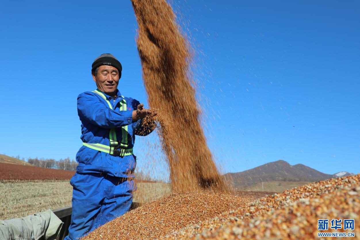 ??10月22日,在內(nèi)蒙古自治區(qū)呼倫貝爾農(nóng)墾綽爾河農(nóng)牧場(chǎng)有限公司田間,農(nóng)場(chǎng)員工正在收獲高粱。新華網(wǎng)發(fā)(哈園碩 攝)