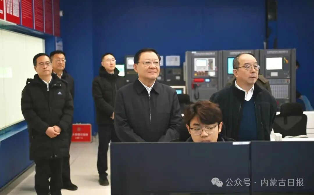 12月2日,自治區(qū)黨委書(shū)記王偉中來(lái)到三峽現(xiàn)代能源創(chuàng)新示范園,聽(tīng)取新能源開(kāi)發(fā)建設(shè)運(yùn)營(yíng)和“源網(wǎng)荷儲(chǔ)”技術(shù)研發(fā)應(yīng)用等情況介紹。草原云·內(nèi)蒙古新聞網(wǎng)記者 馬建兵 攝
