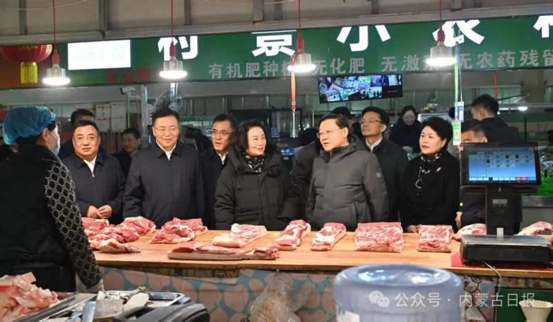 2月13日,自治區(qū)黨委書記、人大常委會主任王偉中走進賽罕區(qū)寶全農(nóng)貿(mào)市場,了解商品產(chǎn)地、存儲、價格、運銷等情況。草原云·內(nèi)蒙古新聞網(wǎng)記者 馬建兵 攝