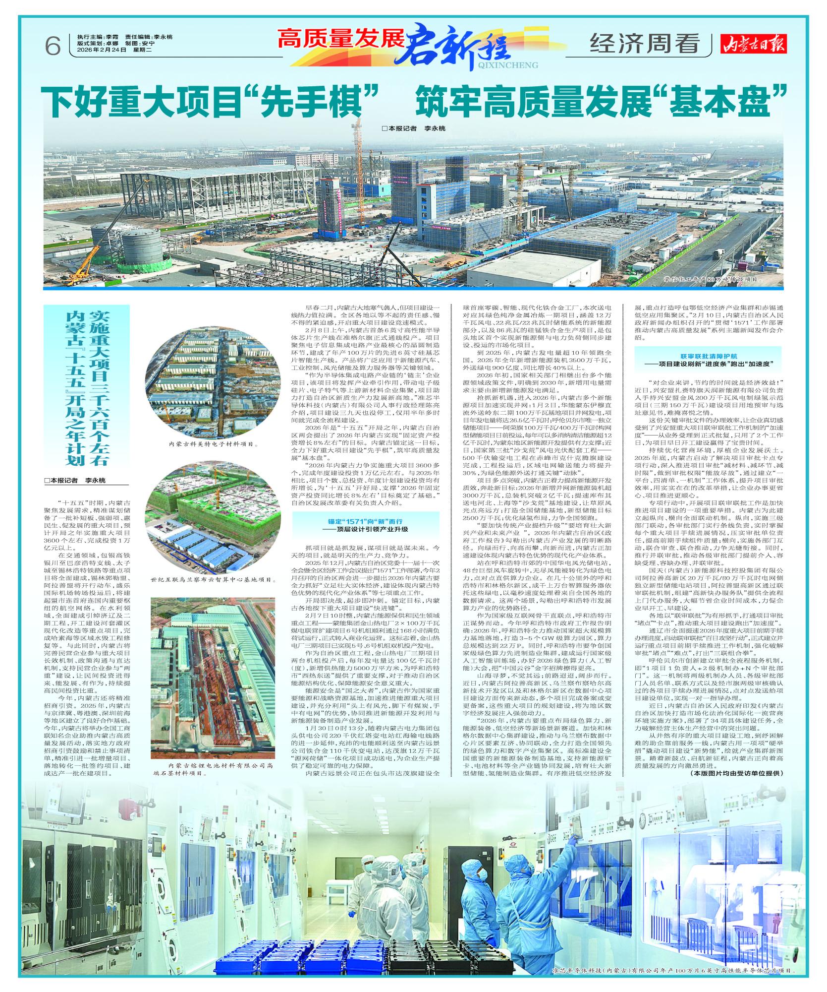 2026年是“十五五”開局之年,內(nèi)蒙古自治區(qū)兩會提出了2026年內(nèi)蒙古實現(xiàn)“固定資產(chǎn)投資增長8%左右”的目標。內(nèi)蒙古錨定這一目標,全力下好重大項目建設(shè)“先手棋”,筑牢高質(zhì)量發(fā)展“基本盤”。