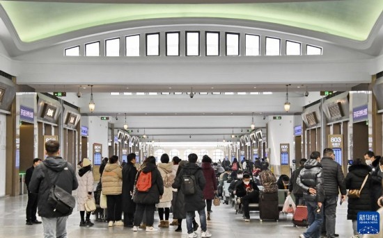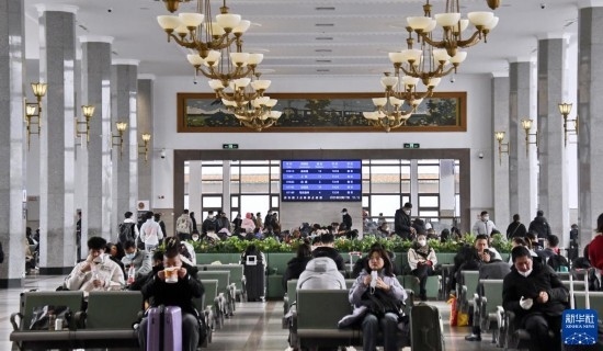 旅客在北京火車(chē)站候車(chē)(2023年2月17日攝)。