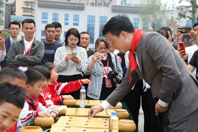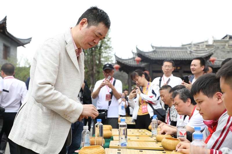人民網(wǎng)銅仁5月15日電 (記者李乃妍)5月14日,第十屆中國女子圍棋甲級聯(lián)賽希望教室捐贈儀式和指導棋活動在銅仁市梵凈書院進行,中國圍棋協(xié)會主席林建超等出席活動并發(fā)言。世界冠軍古力、孔杰、馬曉春等與當?shù)匦∑逋轮笇濉?/p>