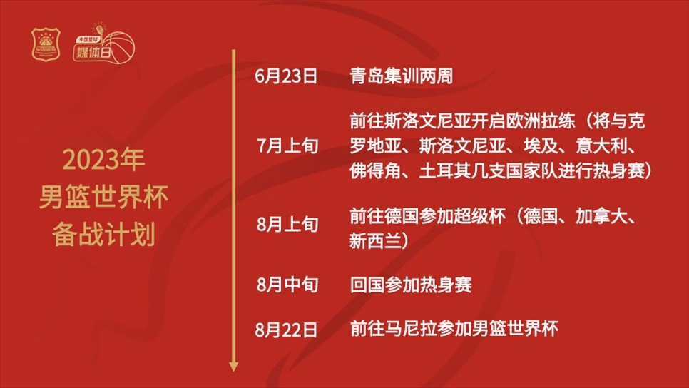 談到中國(guó)男籃備戰(zhàn)世界杯的具體規(guī)劃時(shí),徐濟(jì)成表示:“球隊(duì)將于6月23日在青島開(kāi)啟為期兩周的集訓(xùn);7月上旬前往斯洛文尼亞開(kāi)啟歐洲拉練,將與克羅地亞、斯洛文尼亞、埃及、意大利、佛得角、土耳其幾支國(guó)家隊(duì)進(jìn)行熱身賽;8月上旬前往德國(guó)參加超級(jí)杯,對(duì)手包括德國(guó)、加拿大、新西蘭;8月中旬回國(guó)參加1-2場(chǎng)熱身賽后,將前往馬尼拉參加男籃世界杯?!?/p>