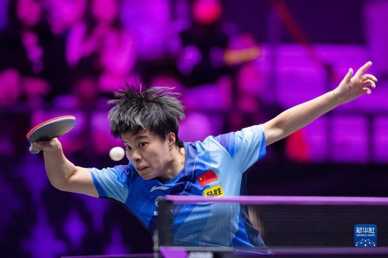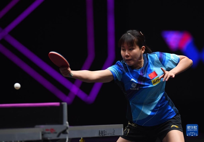 2023年4月20日,中國(guó)選手王藝迪在比賽中回球。當(dāng)日,在澳門塔石體育館舉行的2023世界乒乓球職業(yè)大聯(lián)盟(WTT)澳門冠軍賽女子單打比賽中,中國(guó)選手王藝迪以3比2戰(zhàn)勝波多黎各選手阿德里安娜·迪亞茲,晉級(jí)八強(qiáng)。