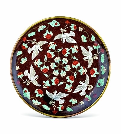 雜項包括景泰藍、錫器、銀器、竹編、草編、木雕、貝殼鏤雕、泥塑等多個門類,名品與新品琳瑯滿目。1951年至1952年,常沙娜在林徽因的指導(dǎo)下設(shè)計的北京景泰藍“和平鴿紋盤”“飛天紋盤”等作品,不僅富有敦煌特色,而且探索了傳統(tǒng)工藝設(shè)計的轉(zhuǎn)型之路。四川自貢名家龔玉璋的竹絲扇工藝精湛,圖像富有文人雅趣。廣州珍珠殼鏤雕成對展示,造型雅致,色澤瑩潤,工藝精細,裝飾華美。來自天津、潮州等地的木雕糕模造型喜慶,寓意吉祥。江蘇無錫惠山泥人的代表作“大阿?!蔽⑿F坐,迎祥納福。造型小巧的陜西泥哨多為黑地彩繪,形象質(zhì)樸,神情生動,上有兩個小孔,吹之可發(fā)聲。