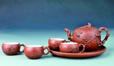 在陶瓷單元,來自全國七個產(chǎn)區(qū)的陶器、瓷器和陶瓷雕塑在材料、工藝、功能、題材、造型、裝飾等方面各具特色。江蘇宜興紫砂陶器因透氣性能優(yōu)良,以茶具、花盆聞名。清初名家陳孟瀛的“紫砂水仙盆”造型質(zhì)樸,書畫裝飾清新雅致;現(xiàn)代名家朱可心的茶具以松鼠葡萄為題材,寓意多子多福、豐收吉祥。云南建水紫陶多以不同顏色的陶泥刻填書畫,形成具有地方特色的“殘?zhí)毖b飾,文人氣息濃厚,如向逢春的“紫陶刻填殘?zhí)B紋瓶”,丁吉三制陶、馬吉生作畫、孟松題詩的“紫陶雙耳四方瓶”等。湖南銅官陶器以綠色、褐色釉為主,多為雙連調(diào)味罐、水壺等日用器皿。安徽界首陶器的剔地留花工藝和武戲“刀馬人”裝飾獨具特色,名家以盧山義為代表。江西景德鎮(zhèn)是傳統(tǒng)瓷區(qū),產(chǎn)量大,行銷廣,青瓷、青花、古彩等品種豐富,彩繪、浮雕等工藝精湛,如“青花龍紋盤”以鏤雕透光的“玲瓏眼”工藝為特色;“青瓷浮雕一品當(dāng)朝紋盤”繪仙鶴立于潮頭,寓意聲名顯赫;名家王步的“青花白菜圖盤”以中國傳統(tǒng)繪畫兼工帶寫的手法繪制白菜形象,既富生活雅趣,又寓發(fā)財之意。江西美術(shù)工作室則以現(xiàn)實題材、寫實風(fēng)格為特色,曾龍升創(chuàng)作的瓷塑“牧童牛上比英雄”傳遞出“老幼互相忙生產(chǎn),要為祖國立大功”的時代之聲。福建德化白瓷以瓷塑見長,傳統(tǒng)題材為主。廣東石灣陶器則以陶塑見長,題材多具自然情趣與生活氣息,亦有表現(xiàn)時代題材的作品。