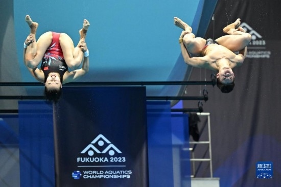 當(dāng)日,在日本福岡舉行的2023年世界游泳錦標(biāo)賽跳水混合團(tuán)體決賽中,中國(guó)隊(duì)以489.65分奪冠。