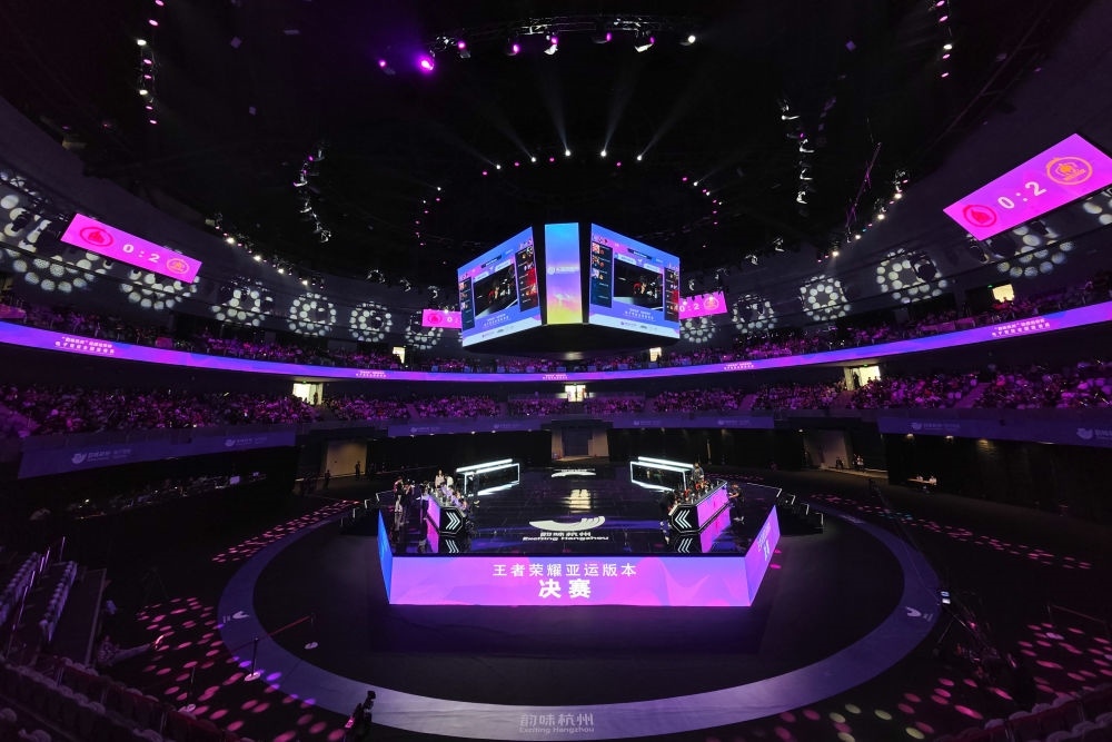 這是在杭州電競中心拍攝的“韻味杭州”電子競技全國邀請賽王者榮耀亞運版決賽現場(2023年5月21日攝)。新華社記者 黃宗治 攝