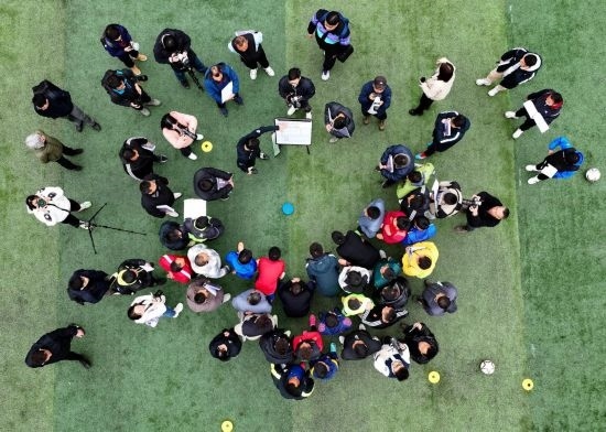 12月12日,學員參加“學轉(zhuǎn)英超”基層足球教練培訓項目(無人機照片)。新華社記者 劉續(xù) 攝