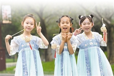 | 湖北省武漢市堤角公園,小朋友身穿漢服參加游園活動(dòng)。周 超攝(影像中國(guó)) |