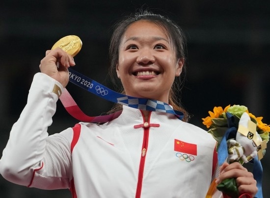 2021年8月7日,冠軍劉詩(shī)穎在東京奧運(yùn)會(huì)田徑項(xiàng)目女子標(biāo)槍頒獎(jiǎng)儀式上。新華社記者 呂小煒 攝
